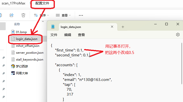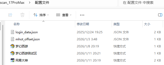 先把"梦幻西游",”“网易大神”的快捷方式复制到文件夹《配置文件》中
