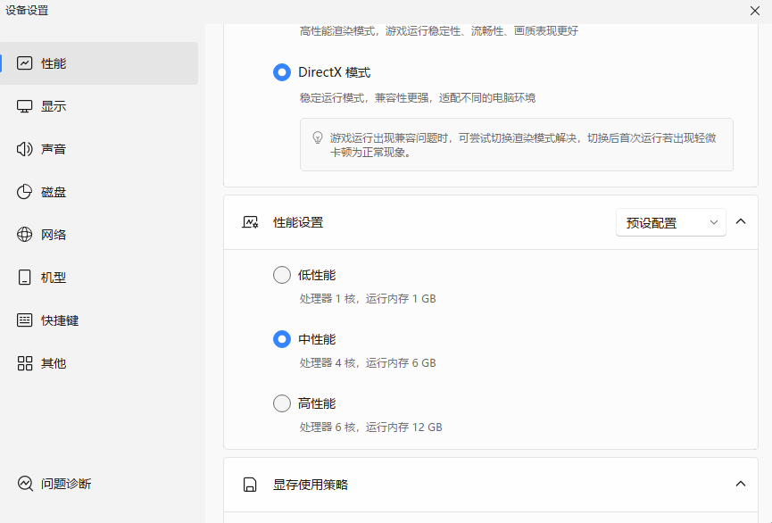 ✨:1,性能-选择Directx模式