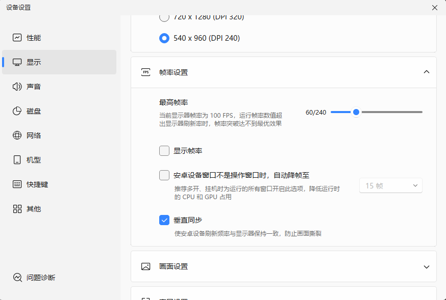 ✨:4,显示设置里面:540*960(DPI240),勾选垂直同步,关掉多标签模式,勾选MuMu定制鼠标指针样式